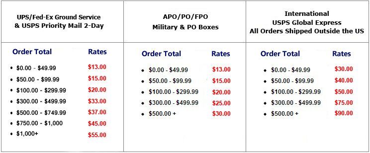 All APO/FPO and international orders will be shipped via USPS Priority Mail and the receiver